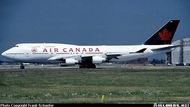 Air Canada Boeing 747-433M, C-GAGN, is shown at London Heathrow in 1996.