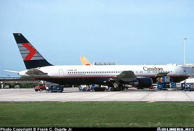 Canadian Airlines International Boeing 767-375ER, C-FCAB, is shown at Orlando in June 1991.