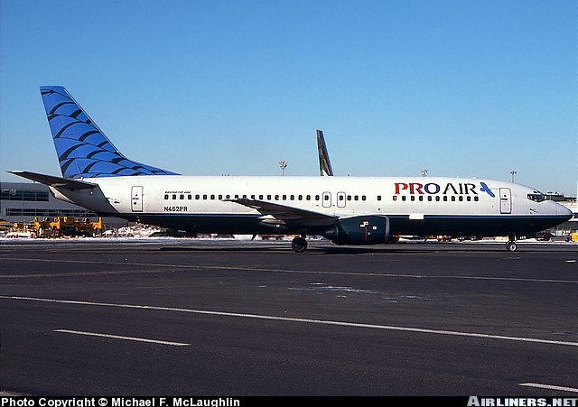 Pro Air Boeing 737-43Q, N462PR, is shown at Kennedy International Airport in January 2000.