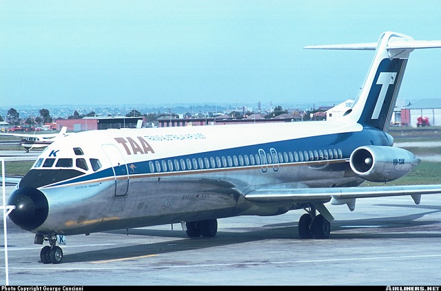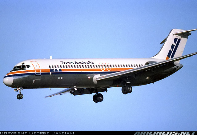 Trans-Australia Airlines McDonnell Douglas DC-9-31, VH-TJK, is show at Melbourne in the early 1970s.