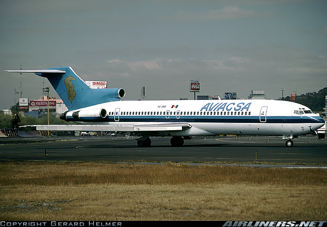 Aviacsa Boeing 727-276, XA-SMB, is shown at Mexico City on February 10, 1999.
