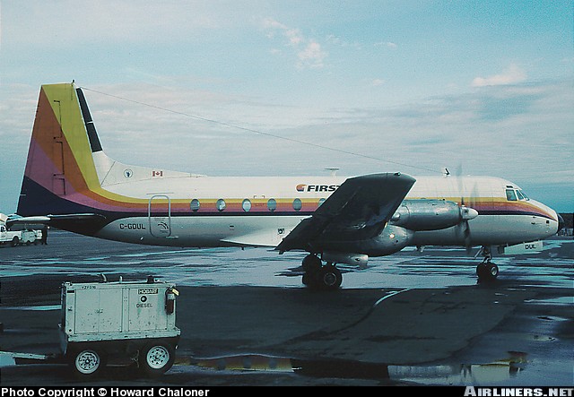 First Air Hawker Siddeley HS-748, C-GDUL, is shown at Yellowknife, Northwest Territories on May 27, 2001.