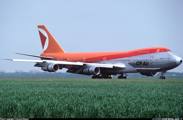 CP Air Boeing 747-217B, C-FCRA, is shown at Amsterdam in the late 1970s.