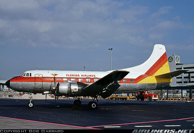 Florida Airlines Martin 404, N259S, is shown at Miami in March 1981.