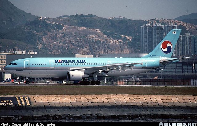 Korean Air Airbus A300B4-622R, HL7295, is shown at Hong Kong in October 1991.