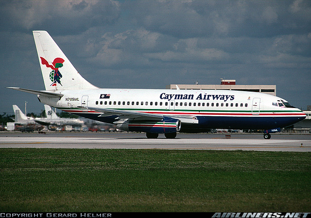 Cayman Airways Boeing 737-2T4, N705ML, is shown at Miami International Airport on December 3, 1992.