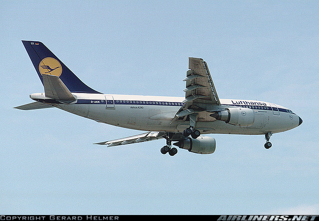 Lufhansa Airbus A310-203, D-AICK, is shown at Frankfurt on May 16, 1985.