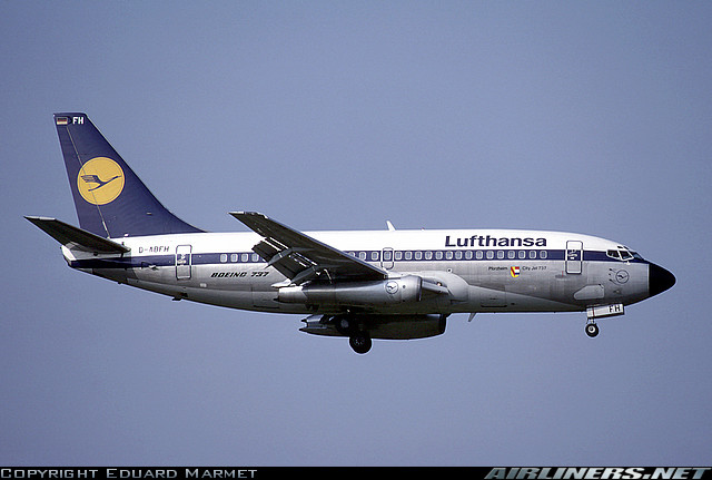 Lufthansa Boeing 737-230, D-ABFH, "Pforzheim," is shown at Zurich in August 1983.