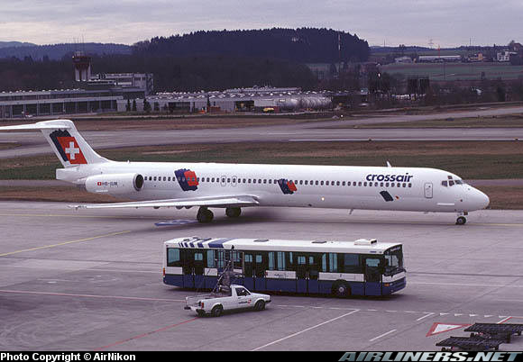Crossair McDonnell Douglas MD-83, HB-IUM, is shown at Zurich in March 1998.