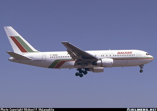 Balkan Boeing 767-27E/ER, F-GHGE, is shown arriving at Kennedy International Airport in June 9, 1997.