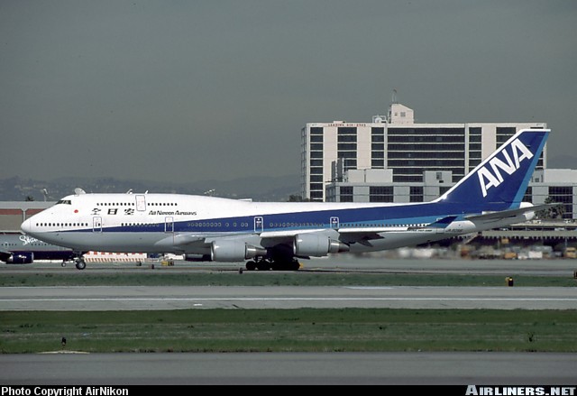 All Nippon Airways Boeing 747-481, JA8096, is shown at Los Angeles International Airport on February 13, 1999.