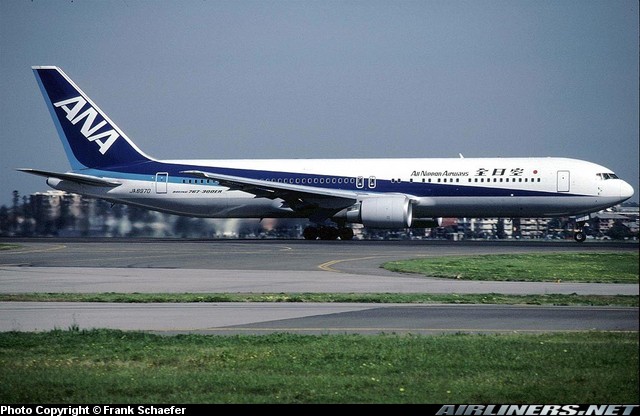 All Nippon Airways Boeing 767-381/ER, JA8970, is shown at Sydney in 1998.