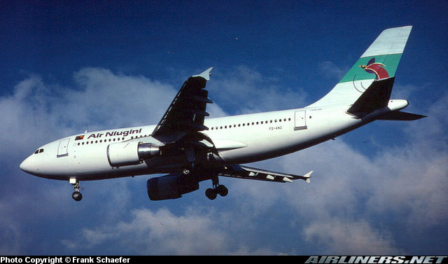 Air Niugini Airbus A310-324, P2-ANG, is shown arriving at Brisbane on September 12, 1999.