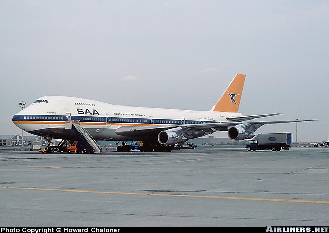 South African Airways Boeing 747-244BM, ZS-SAS, "Helderberg," is shown at Kennedy International Airport