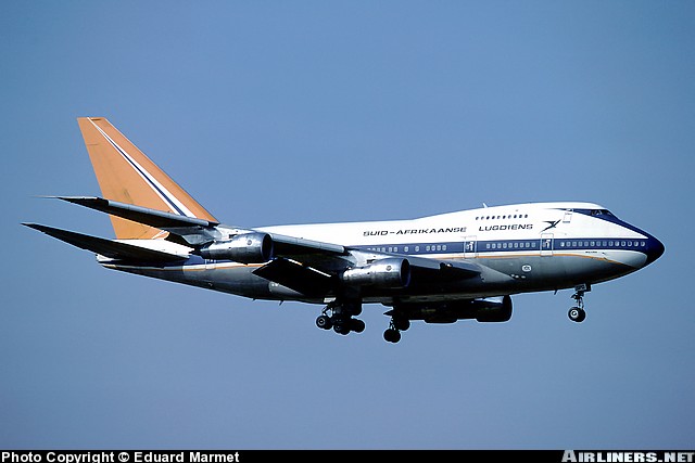 South African Airways Boeing 747SP-44, ZS-SPD, "Majuba," is shown at Zurich on May 15, 1982.