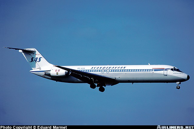 Scandinavian Airlines System McDonnell Douglas DC-9-41, OY-KGA, "Heming Viking," is shown at Zurich