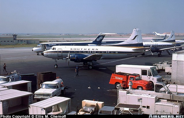Southern Airways Martin 404, N581S, is shown at Atlanta in January 1976.