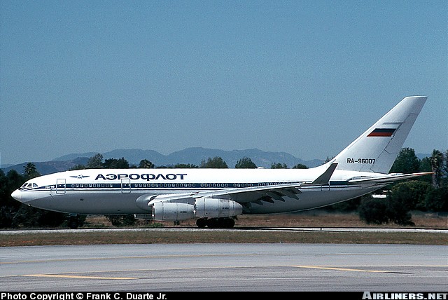 Aeroflot Ilyushin IL-96-300, RA-96007, is shown at Los Angeles International Airport in May 1995.