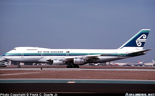 Air New Zealand Boeing 747-219B, ZK-NZZ, "Tokomaru," is shown at Los Angeles in December 1996.