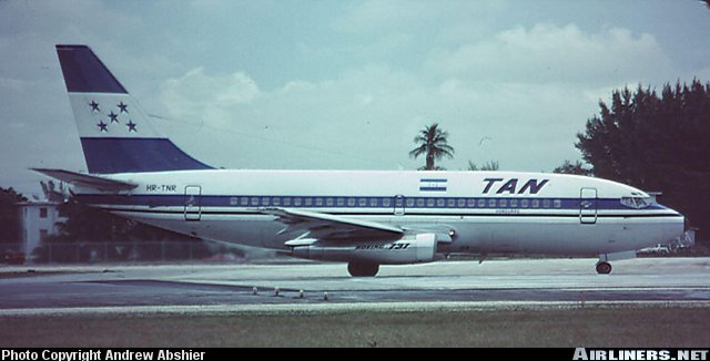 TAN - Transportes Aereos Nacionales Boeing 737-2A3, HR-TNR, is shown at Miami International Airport in September 1980.