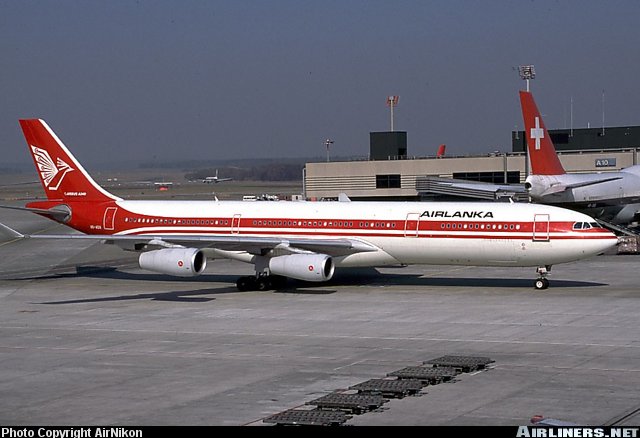 Air Lanka Airbus A340-311, 4R-ADA, is shown at Zurich in March 1996.