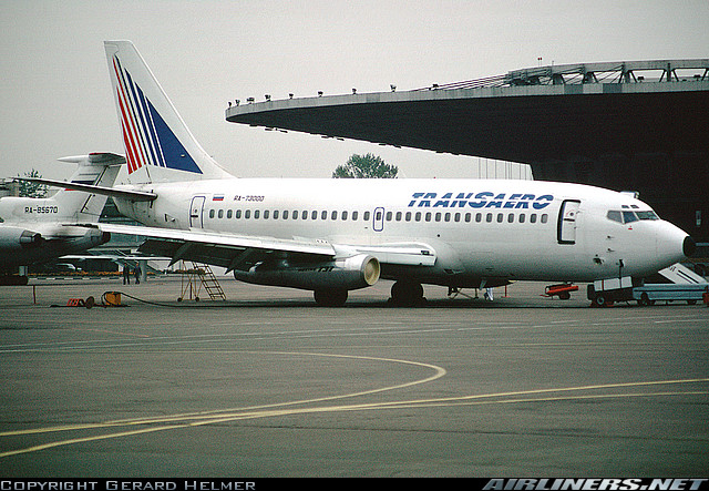 Transaero Airlines Boeing 737-2C9, RA-73000, is shown at Moscow Sheremetyevo on August 27, 1993.