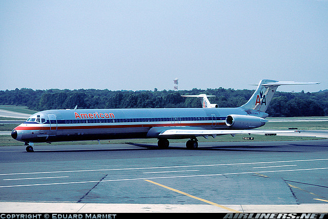 American Airlines McDonnell Douglas DC-9-82 (MD-82), is shown at Baltimore, Maryland on September 11, 1983.