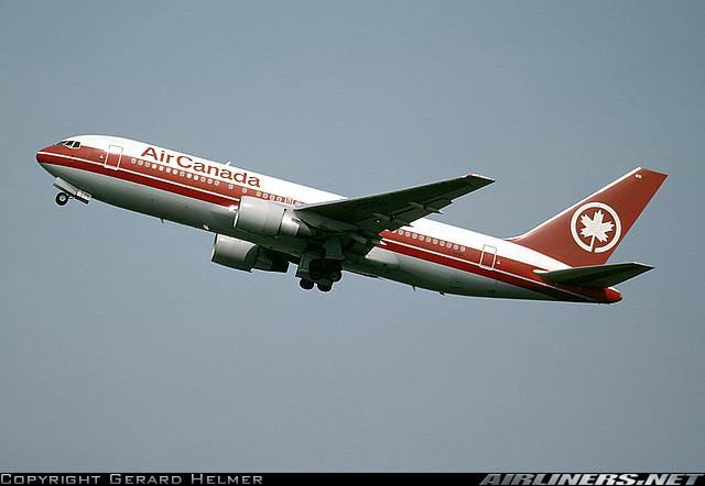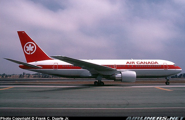 Air Canada Boeing 767-233, C-GAUY, is shown at Los Angeles International Airport in January 1986.