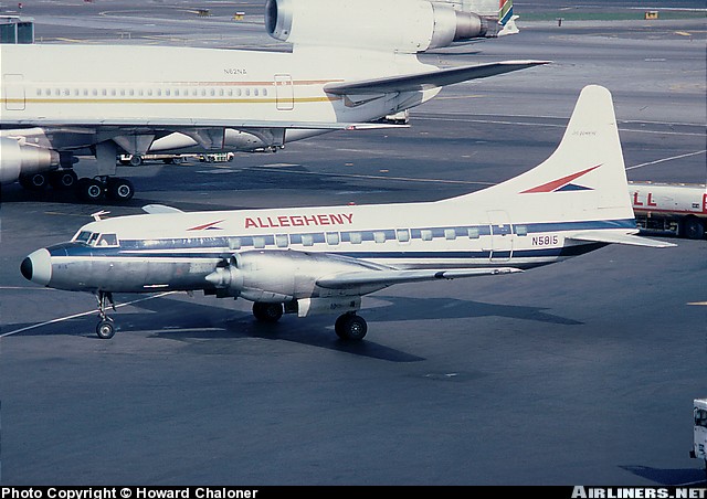 Allegheny Airlines Convair 580, N5815, is shown at LaGuardia Airport on April 3, 1978,