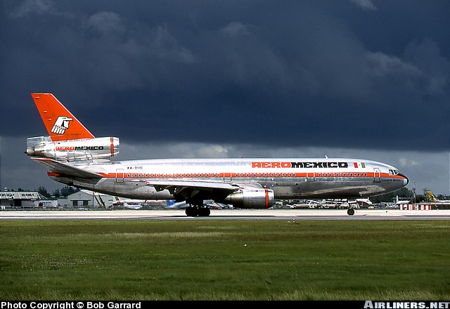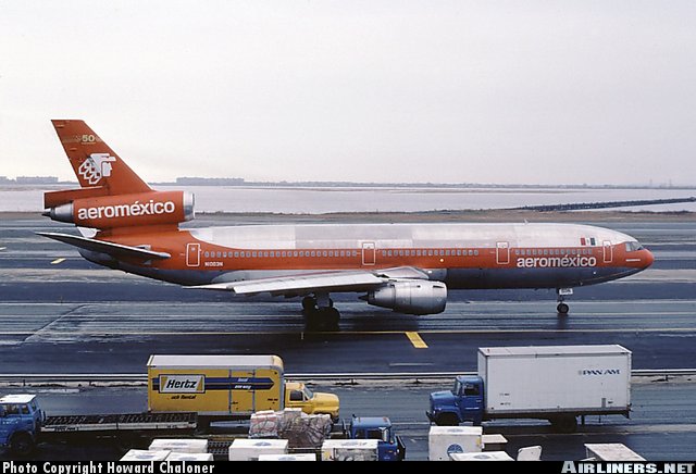 Aeromexico McDonnell Douglas DC-10-15, N1003N, is shown at Kennedy International Airport in the carrier's updated livery on