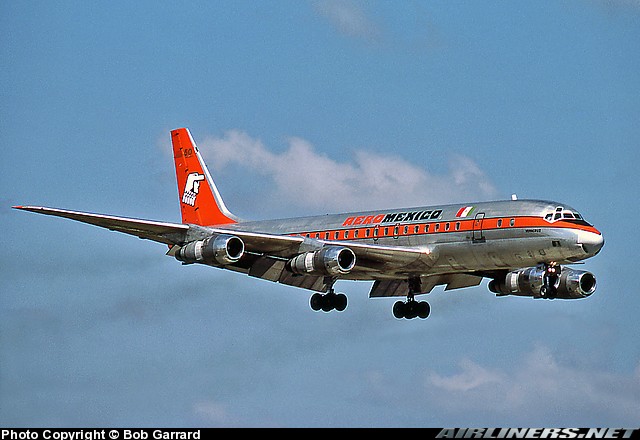 Still wearing its older livery, Aeromexico Douglas DC-8-51, XA-PIK, "Veracruz," is shown approaching Miami International