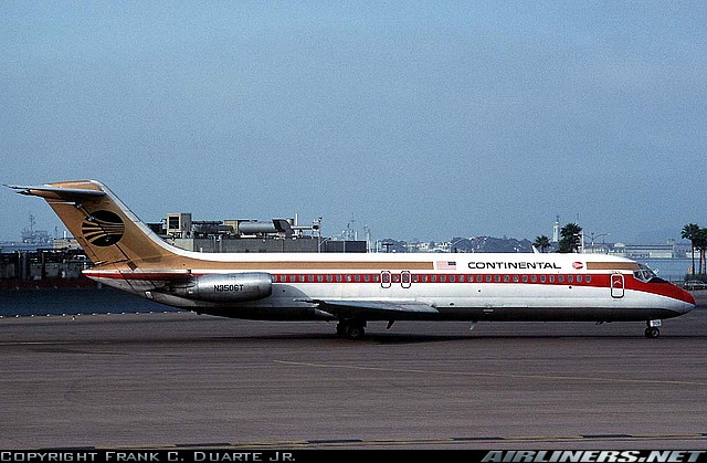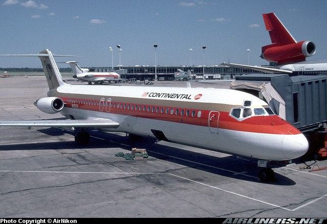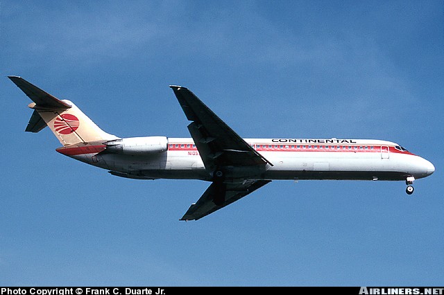 Still wearing hybrid Texas International/Continental merger colors, Continental Airlines McDonnell Douglas DC-9-32,