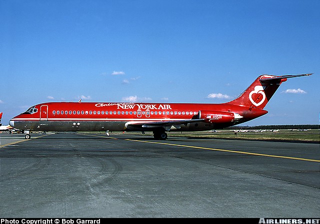 Continental Airlines McDonnell Douglas DC-9-31, N951N, is shown wearing basic New York Air colors and