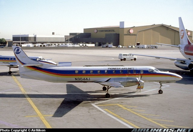 Pioneer Airlines Fairchild Swearingen SA-227AC Metro III, N3044J, is shown at Denver Stapleton International Airport