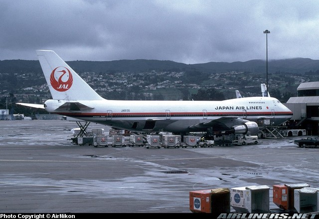 Japan Air Lines Boeing 747-246B, JA8130, is shown at Honolulu International Airport in April 1981.