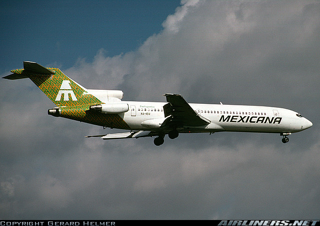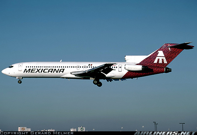Mexicana Boeing 727-264, XA-MXD, is shown arriving at Miami International Airport in the early 1990's wearing another