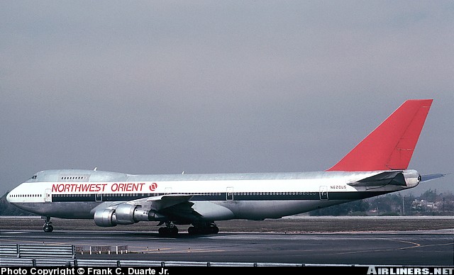Northwest Orient Airlines Boeing 747-135, N620US, is shown at Los Angeles International Airport in February 1979.