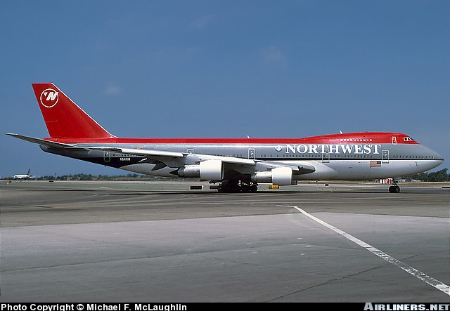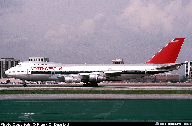 Northwest Airlines Boeing 747-251B, N628US, is shown at Los Angeles International Airport in March 1993 with