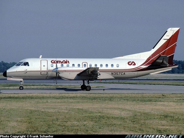 Comair Saab 340A, N357CA, is shown at Detroit Metro Airport on July 6, 1988.