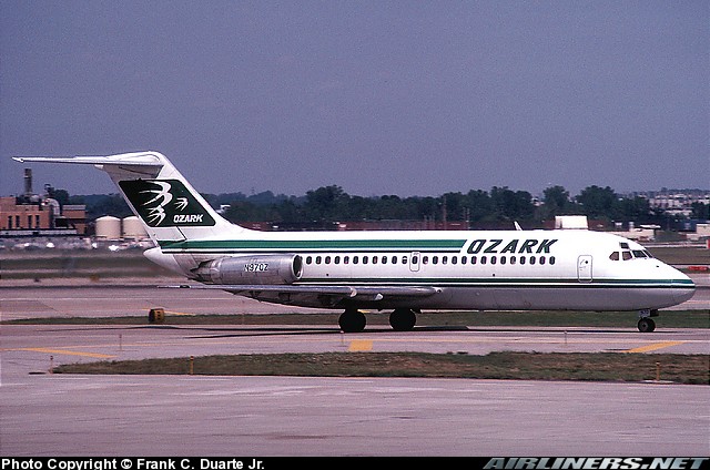 Ozark Air Lines McDonnell Douglas DC-9-15, N970Z, is shown at Lambert Saint Louis International Airport in June 1987