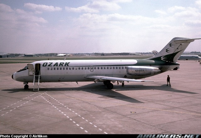 Ozark Air Lines McDonnell Douglas DC-9-15, N491SA, is shown at Houston's Hobby Airport in March 1982.