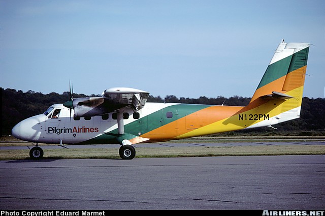 Pilgrim Airlines DeHavilland Canada DHC-6-100 Twin Otter, N122PM, is shown wearing the carrier's updated livery at