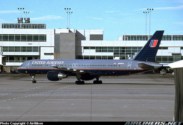 United Airlines Boeing 757-222, N590UA, is shown at Denver International Airport on November 26, 1999 wearing the
