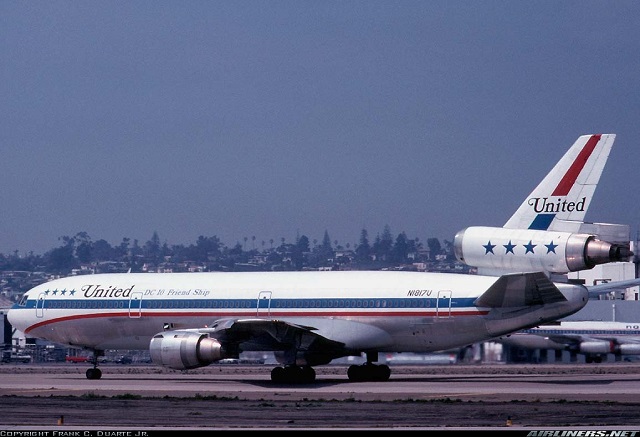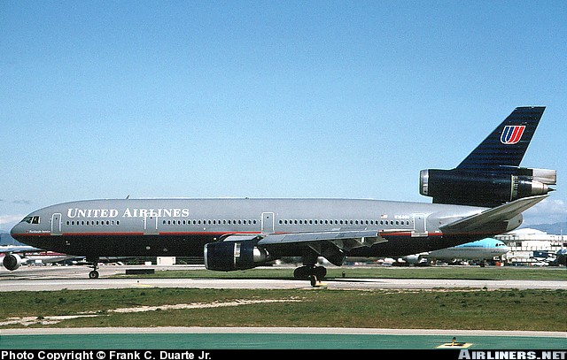 United Airlines McDonnell Douglas DC-10-10, N1846U, is shown at Los Angeles in July 1996 wearing the carrier's 1993