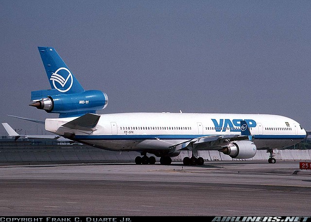 VASP McDonnell Douglas MD-11, PP-SPK, "Luis Eduardo Magalhaes," is shown at Los Angeles International Airport